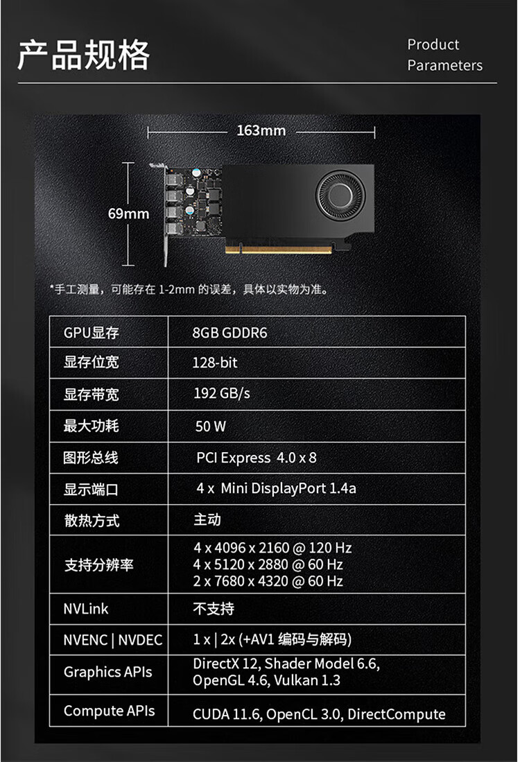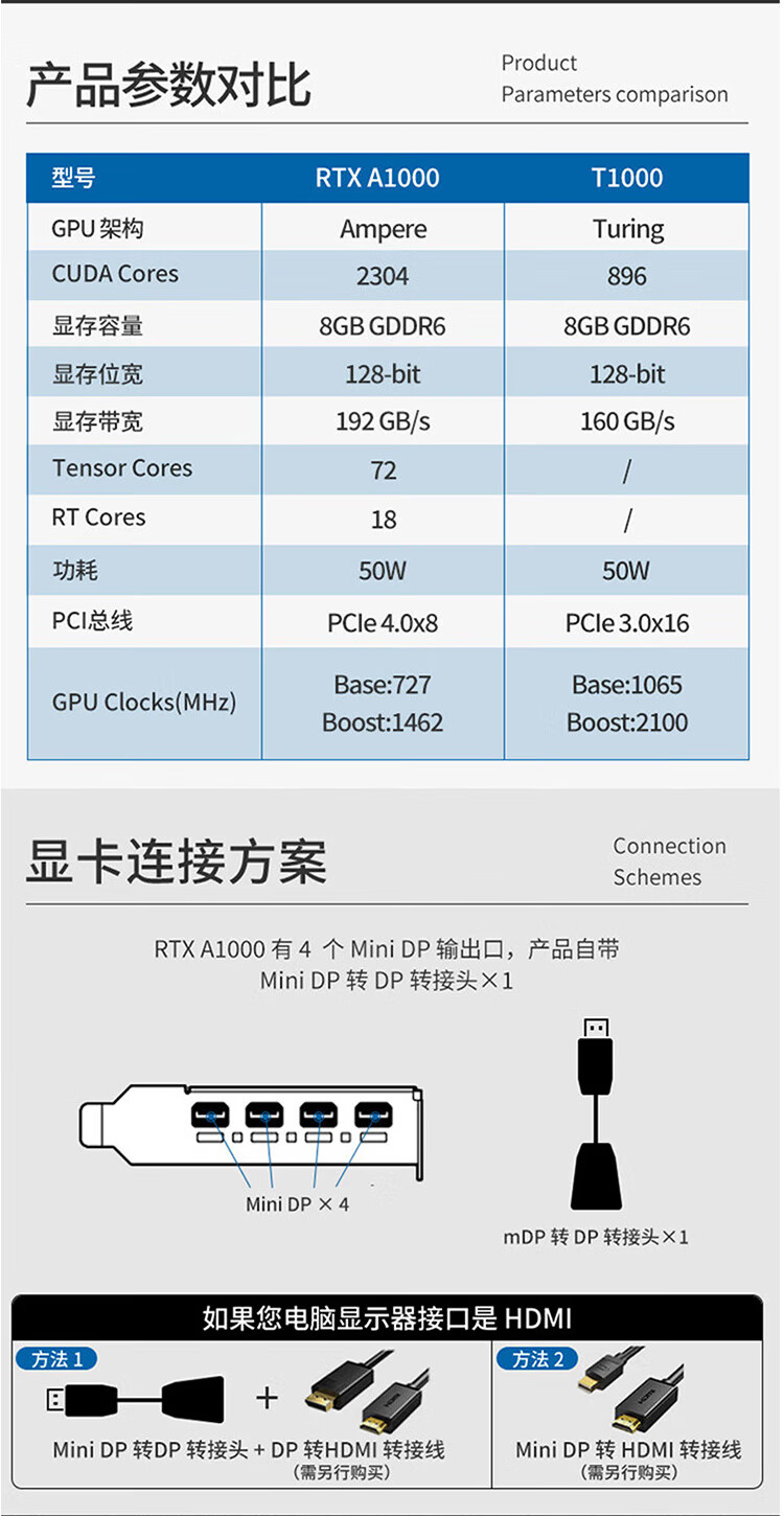 丽台RTX A1000 8GB GDDR6 ECC全新专业绘图显卡建模渲染独立显卡