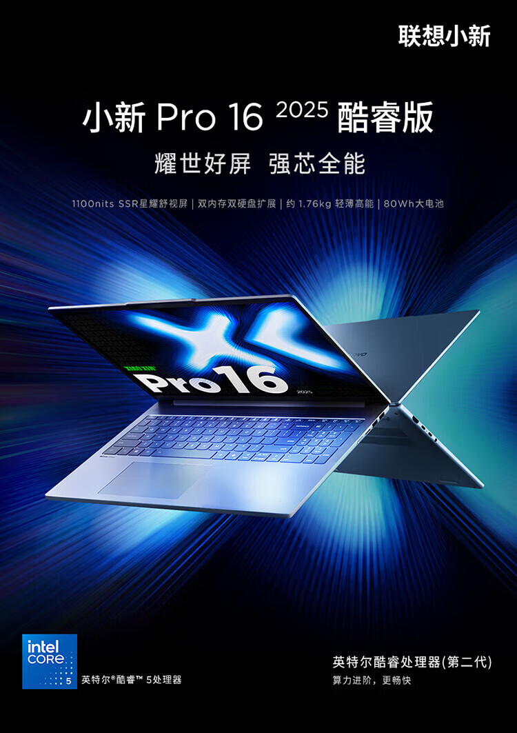 联想(lenovo)小新Pro16 2025补贴 可选酷睿5高性能轻薄本扬天v商务设计办公学生网课游戏本异能者笔记本电脑 i5-13420H 16GB内存 1TB固态V15