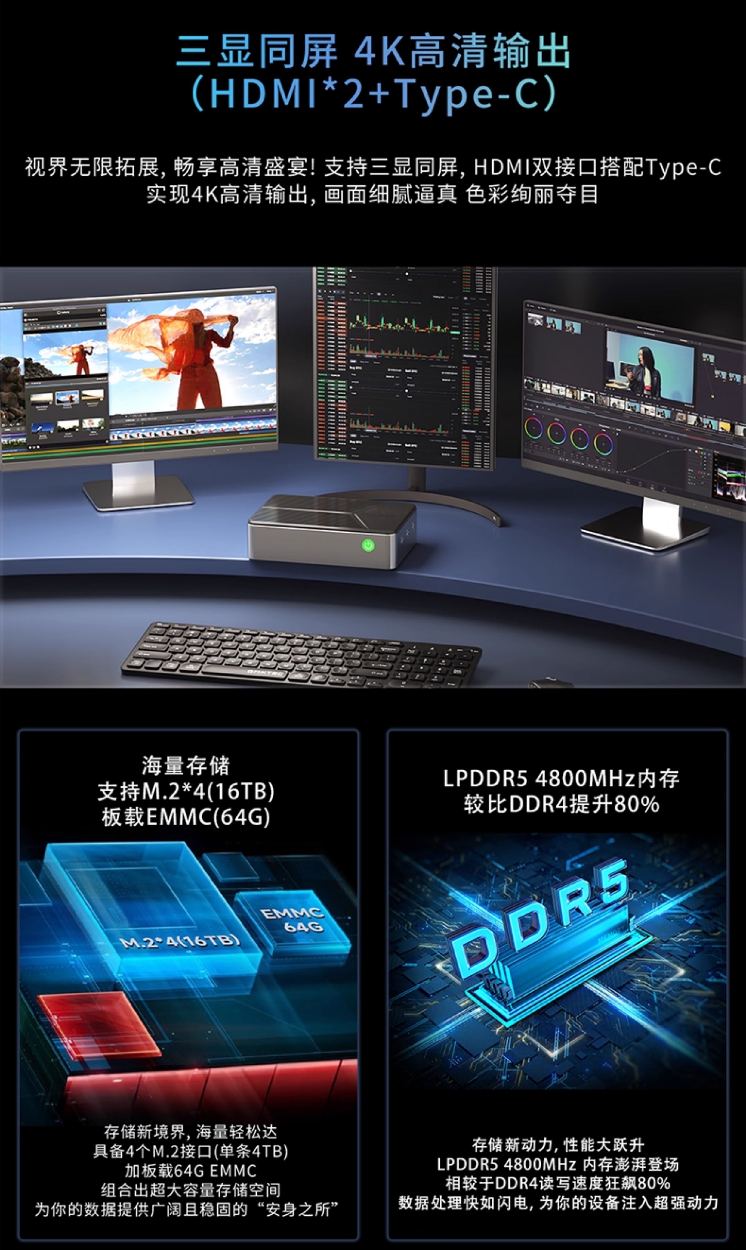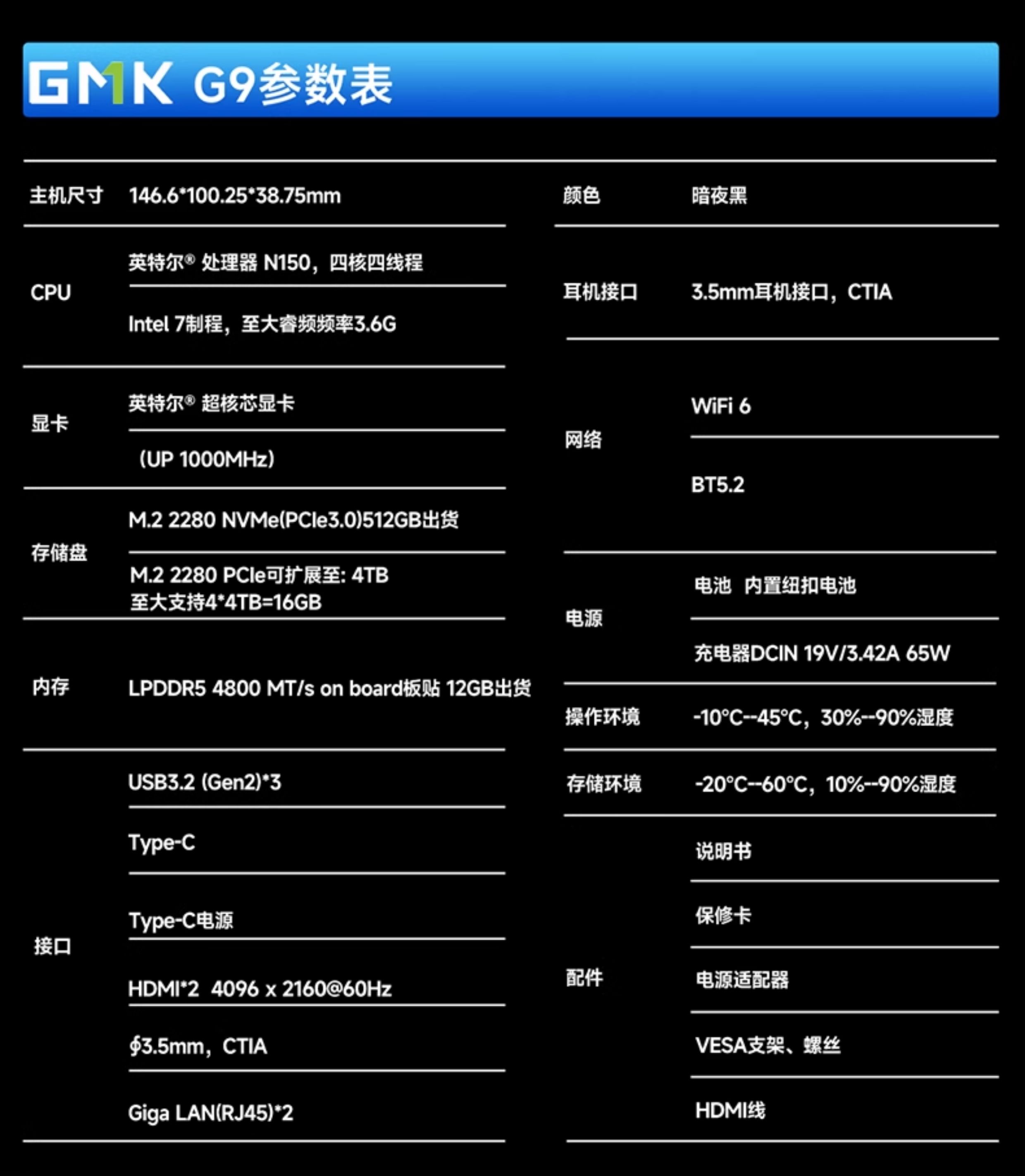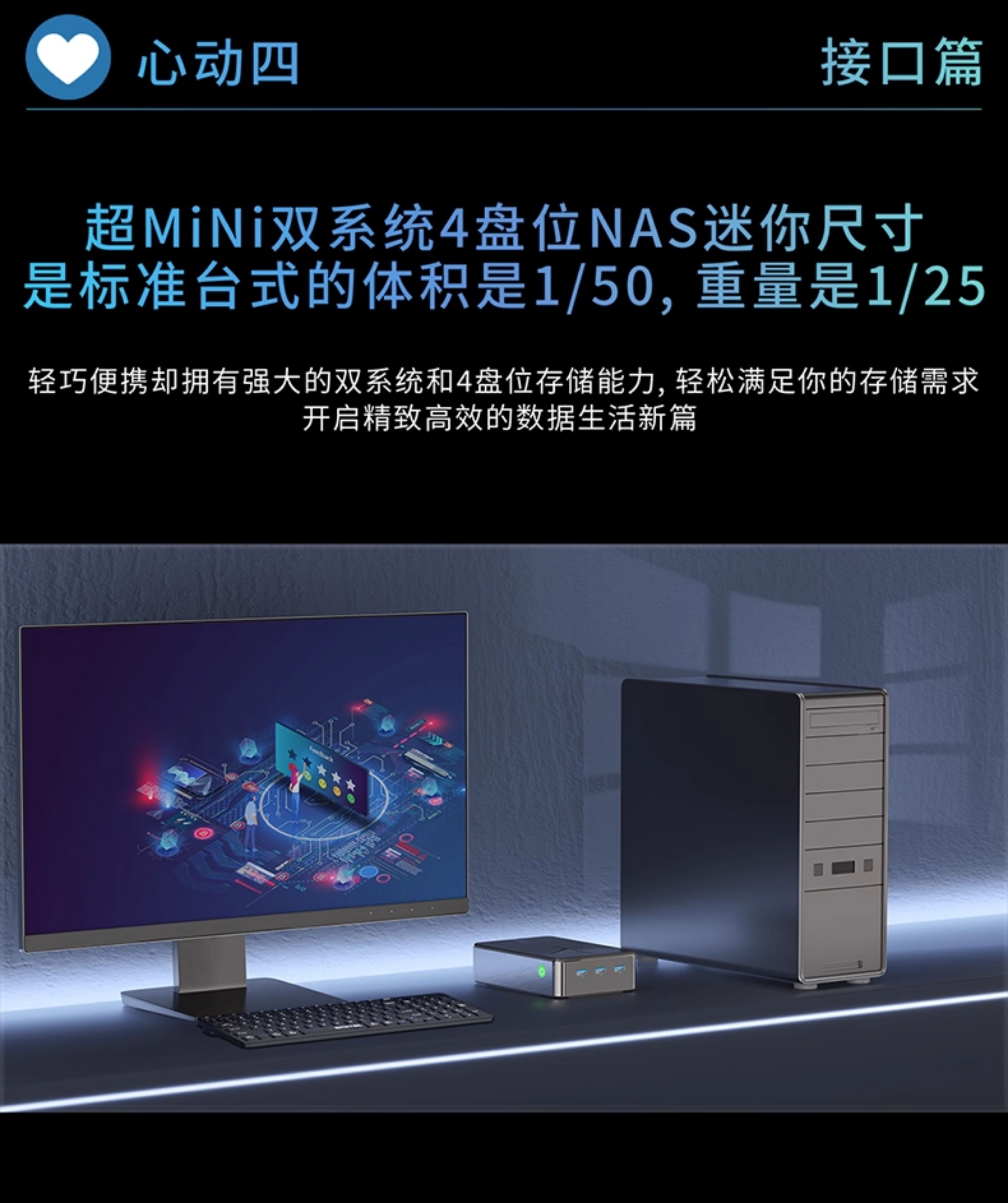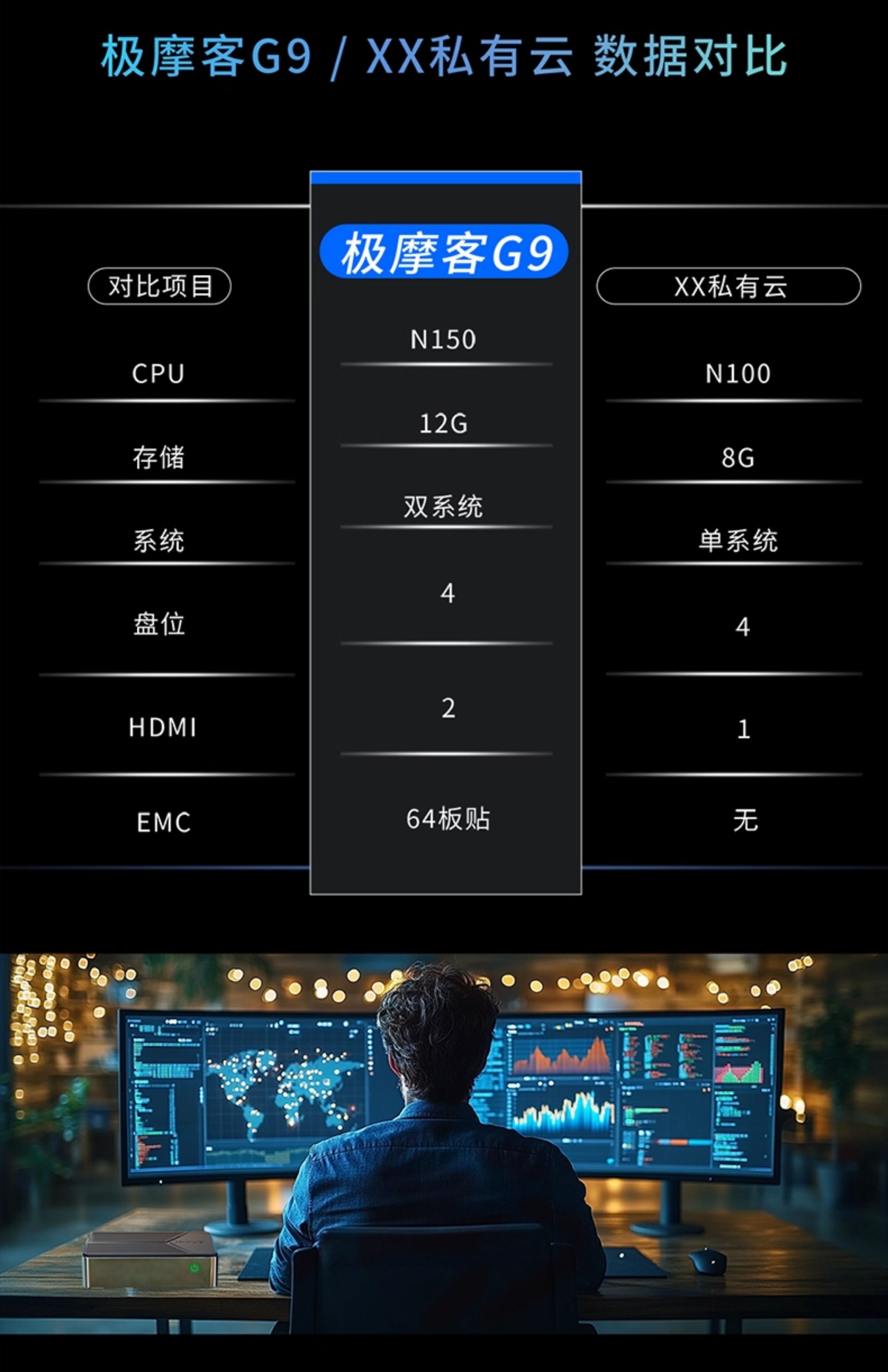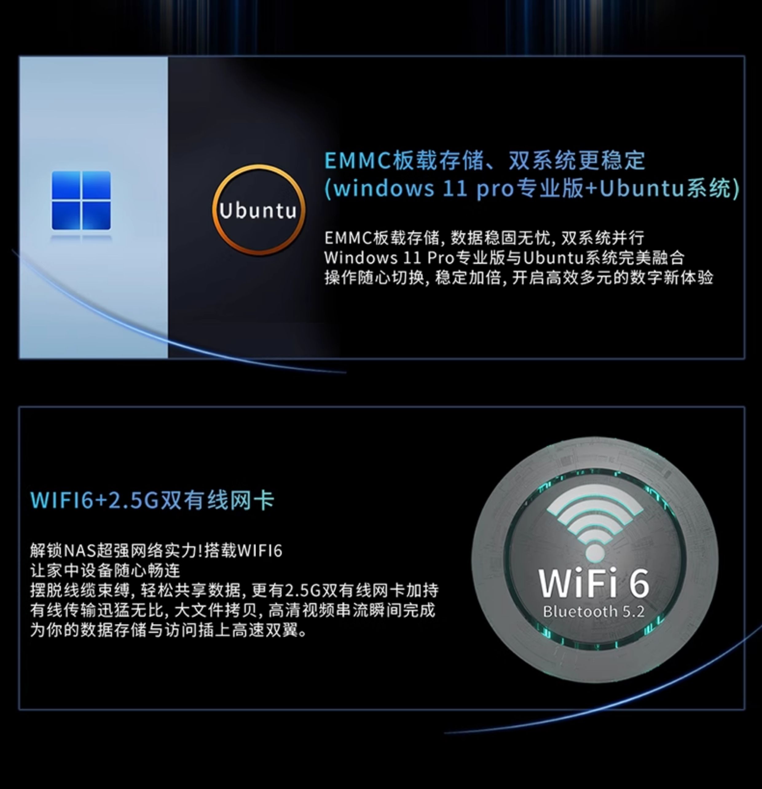 极摩客G9 NAS迷你主机英特尔N150 四硬盘位 双2.5G网口 家庭网盘DIY可存储16T 12G+64+0(预装Ubuntu系统)