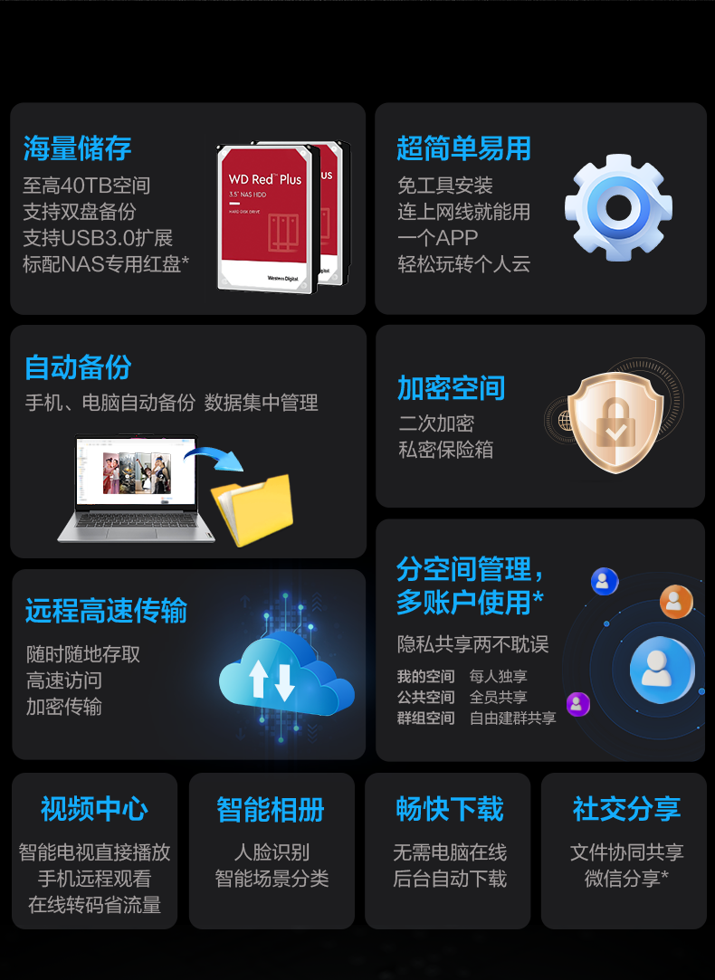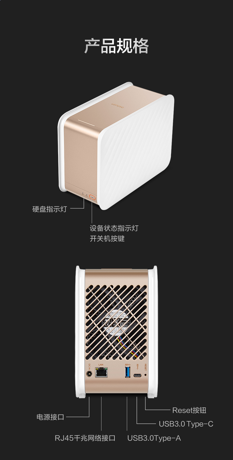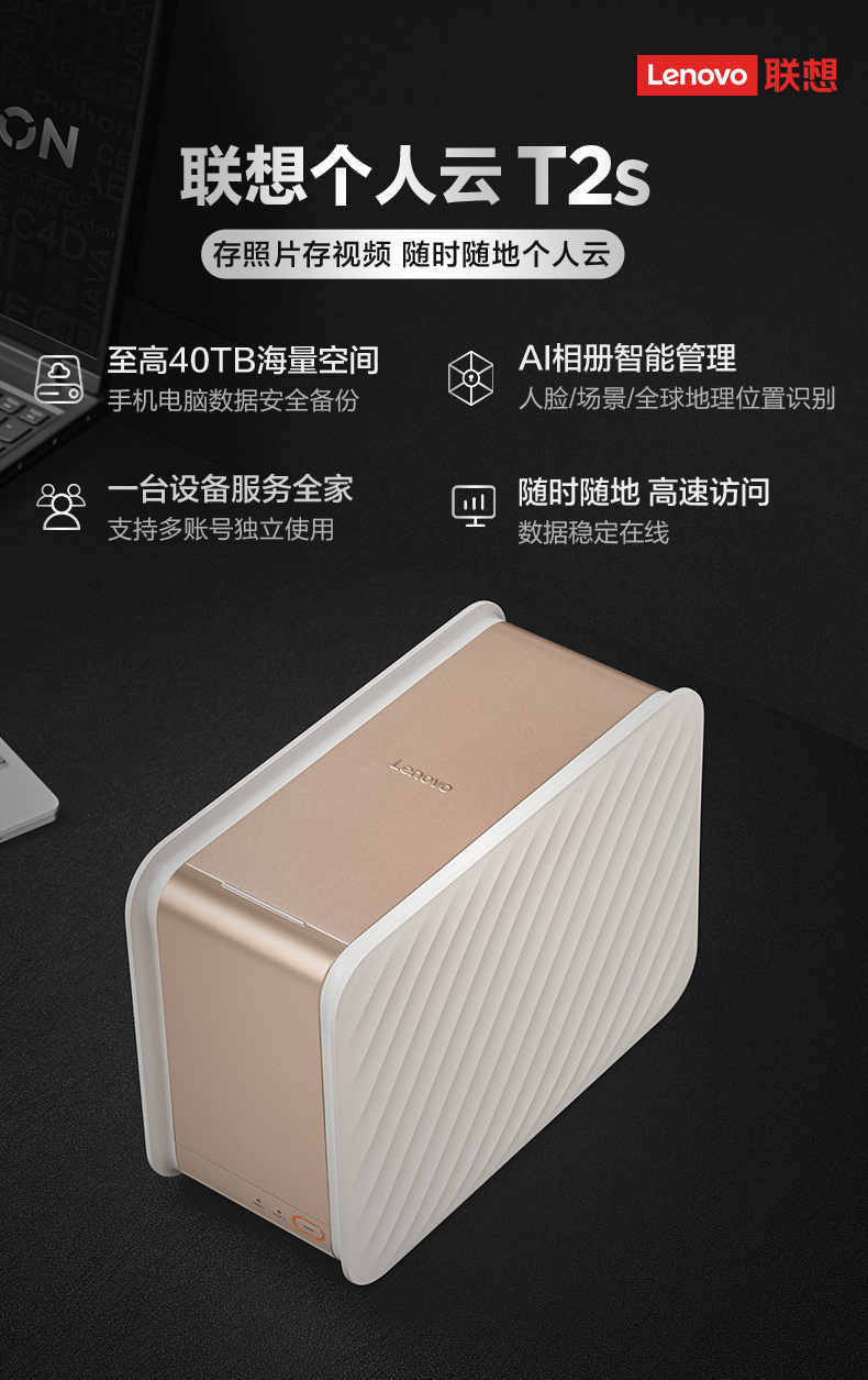 联想个人云T2S nas网络存储服务器私有云家庭家用储存硬盘企业网盘局域网西数红盘Red plus文件共享自动备份