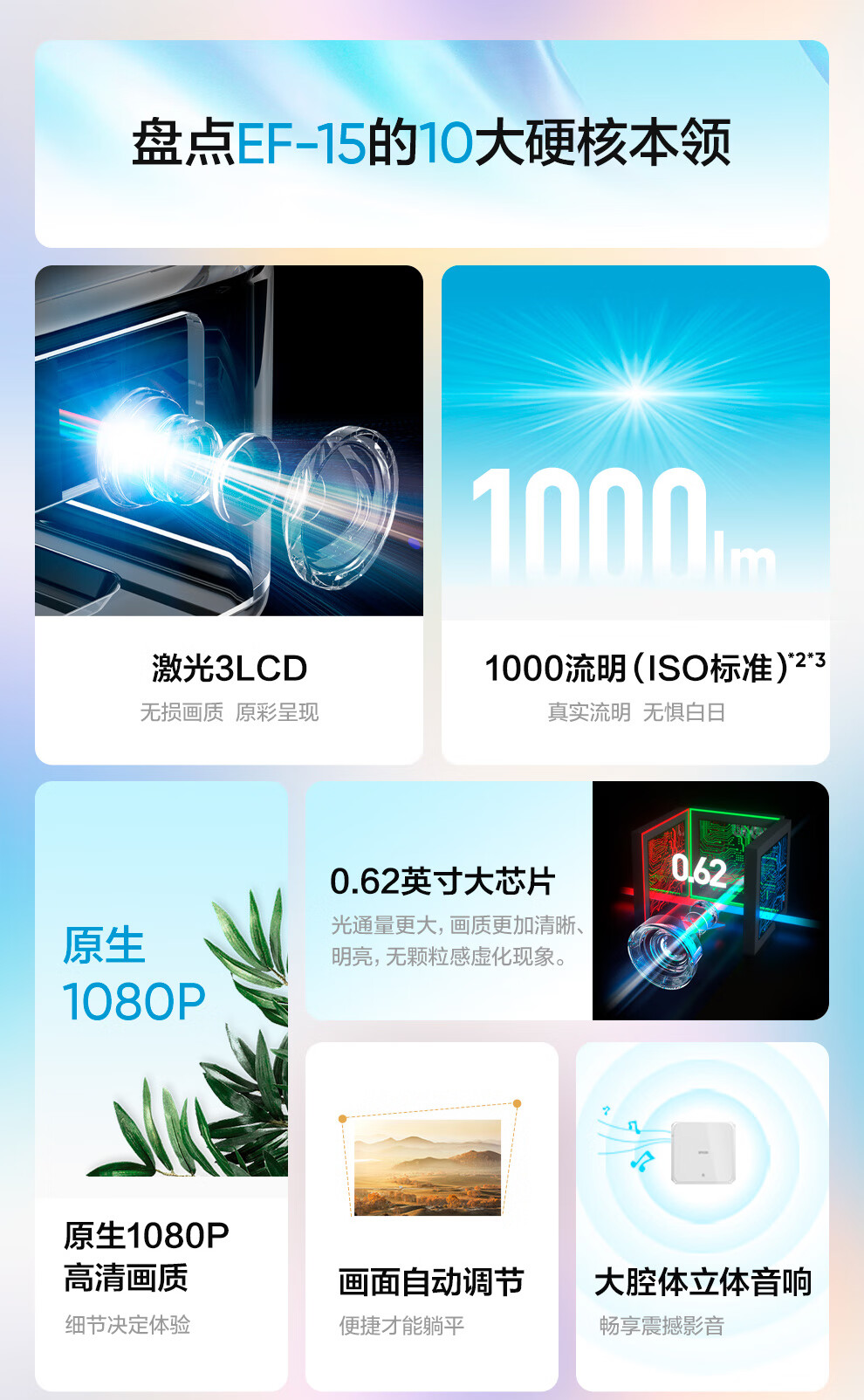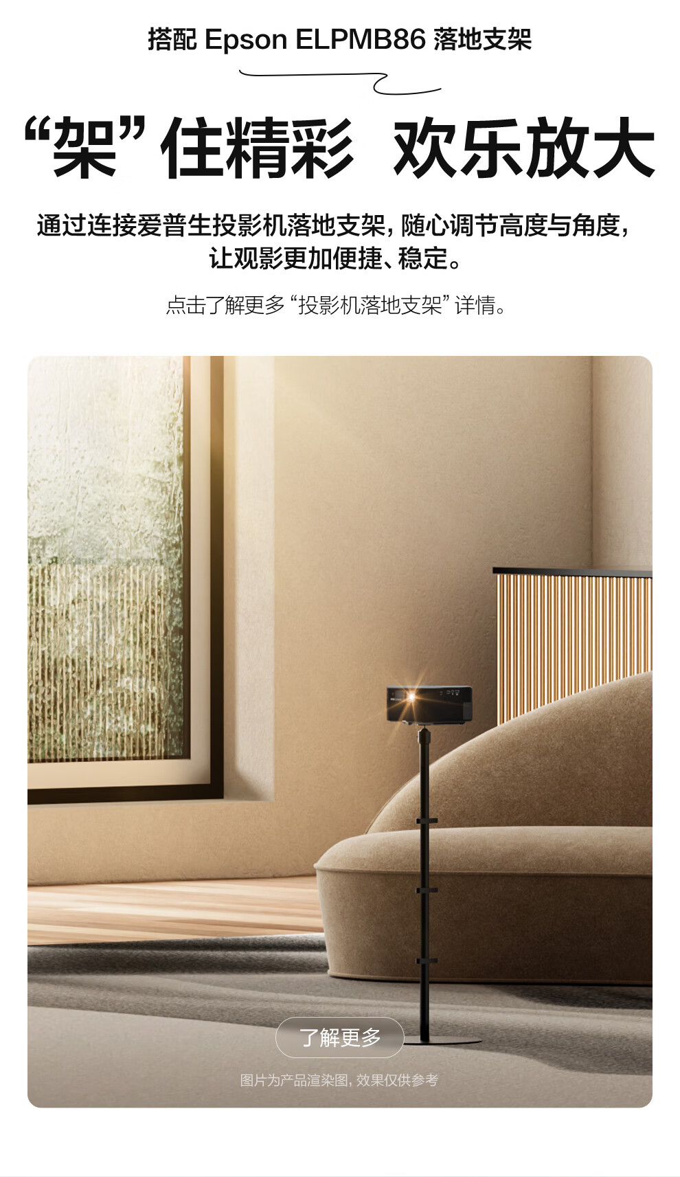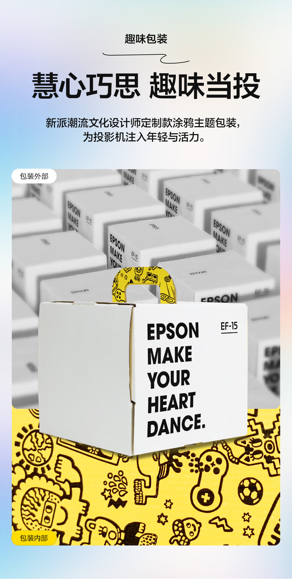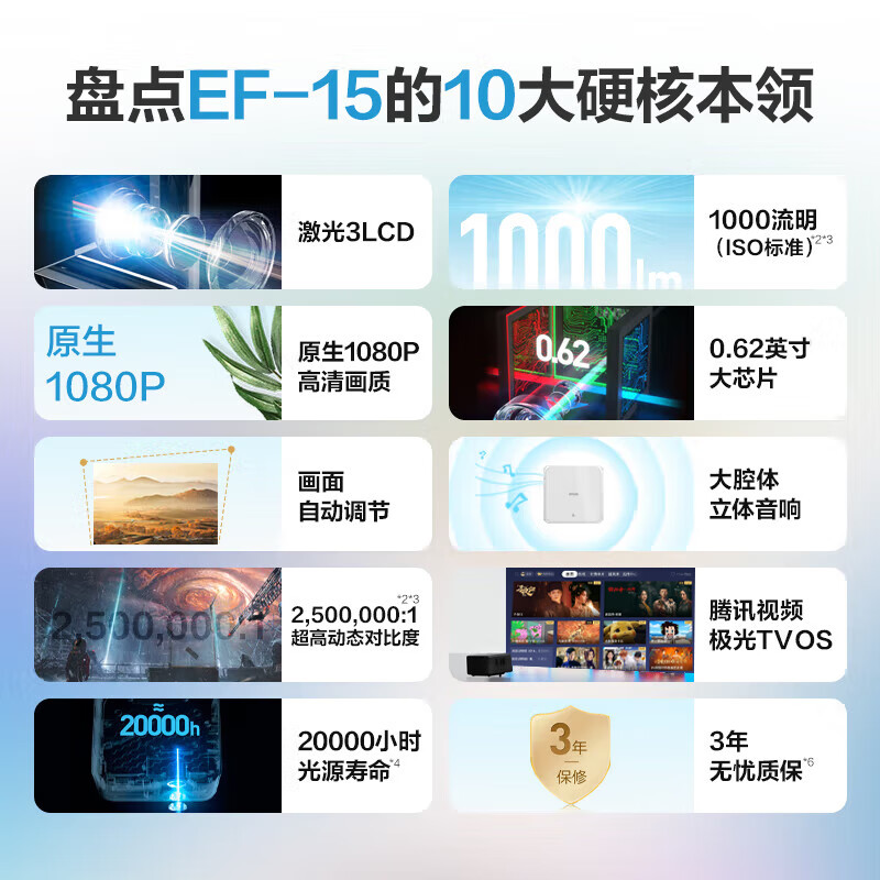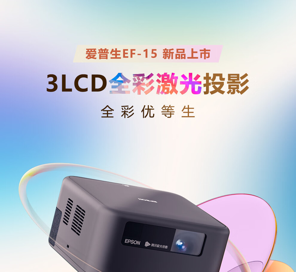 爱普生(EPSON)EF-15B 家用投影仪 3LCD高亮家庭影院智能投影机(0.62”大芯片 1000流明 激光)
