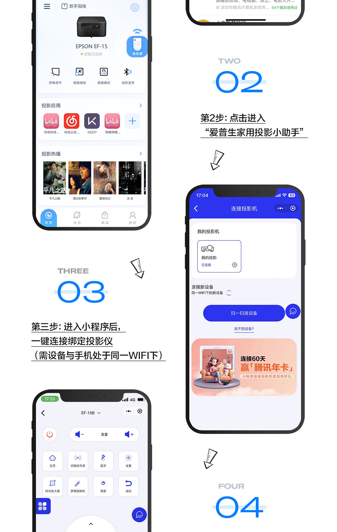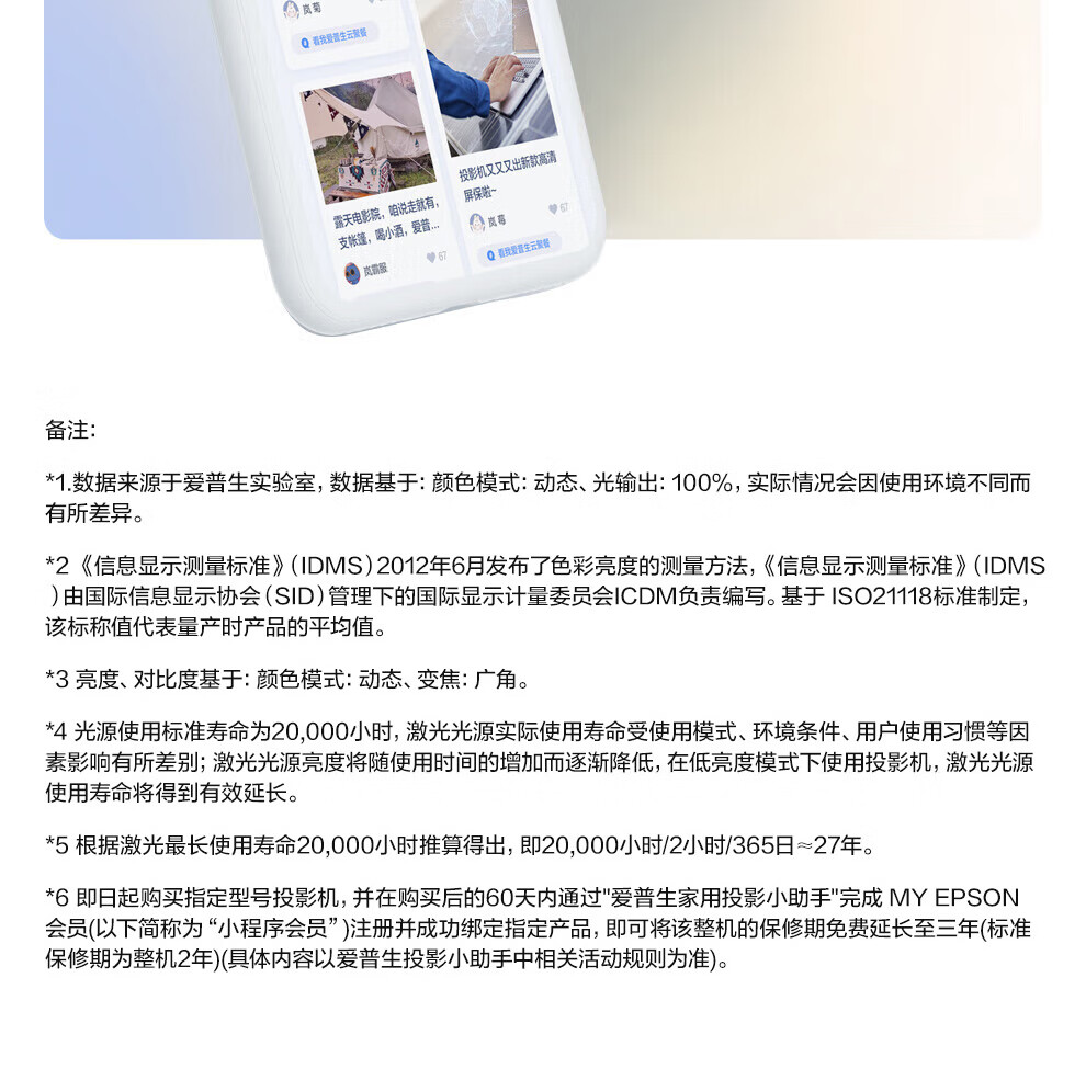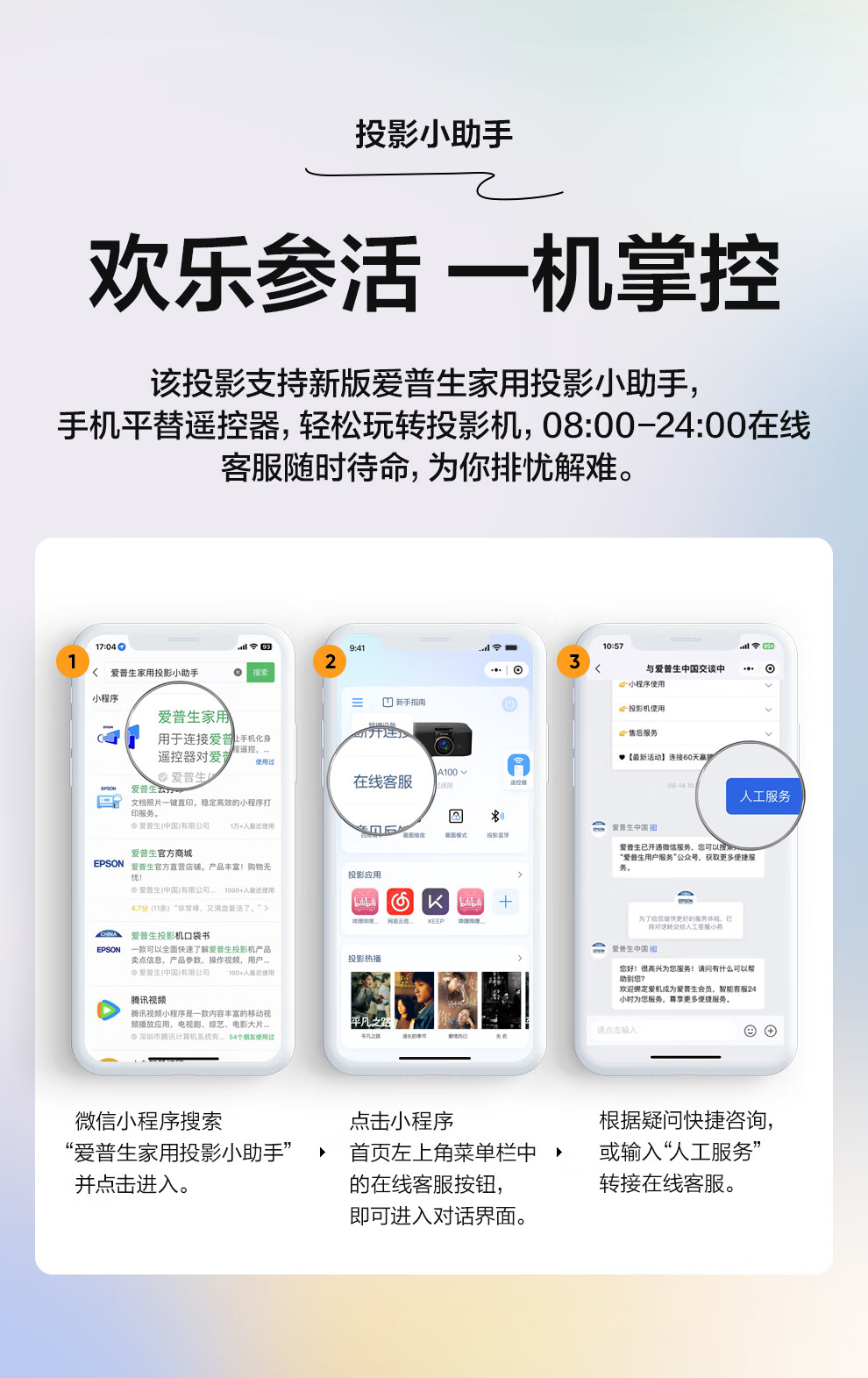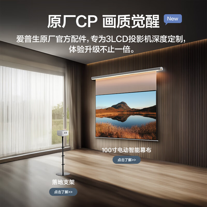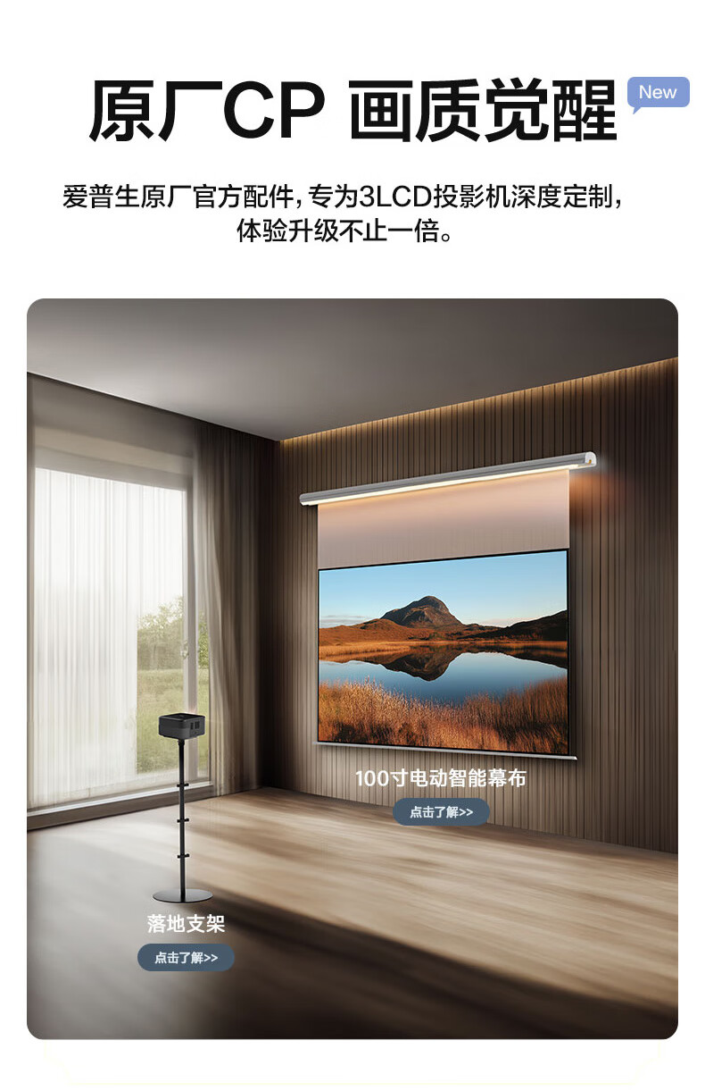 爱普生(EPSON)EF-15B 家用投影仪 3LCD高亮家庭影院智能投影机(0.62”大芯片 1000流明 激光)