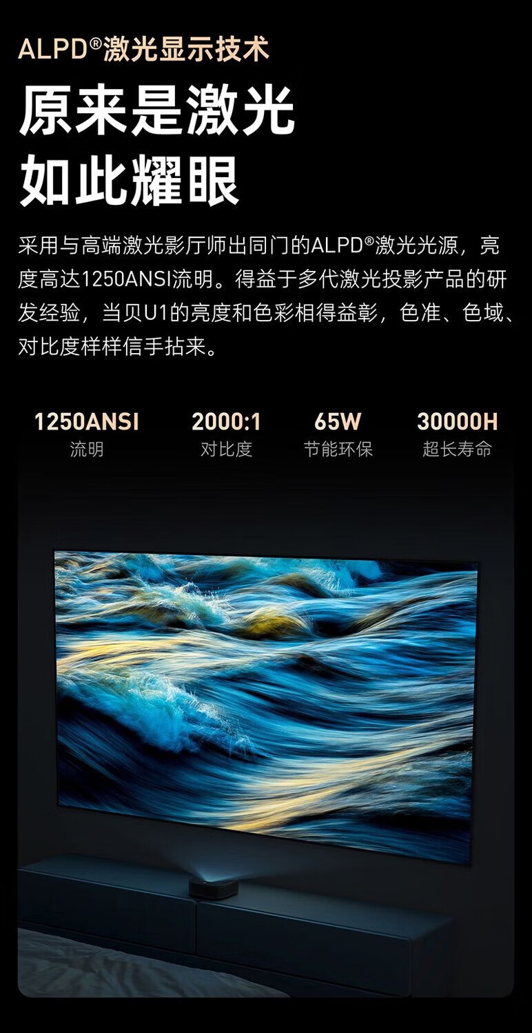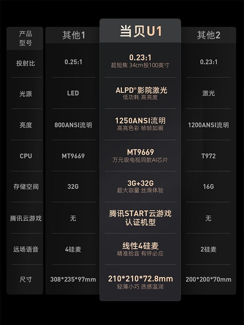 当贝U1 超短焦激光投影仪家用迷你激光电视智能高清卧室家庭影院 95新 当贝u1投影仪95新