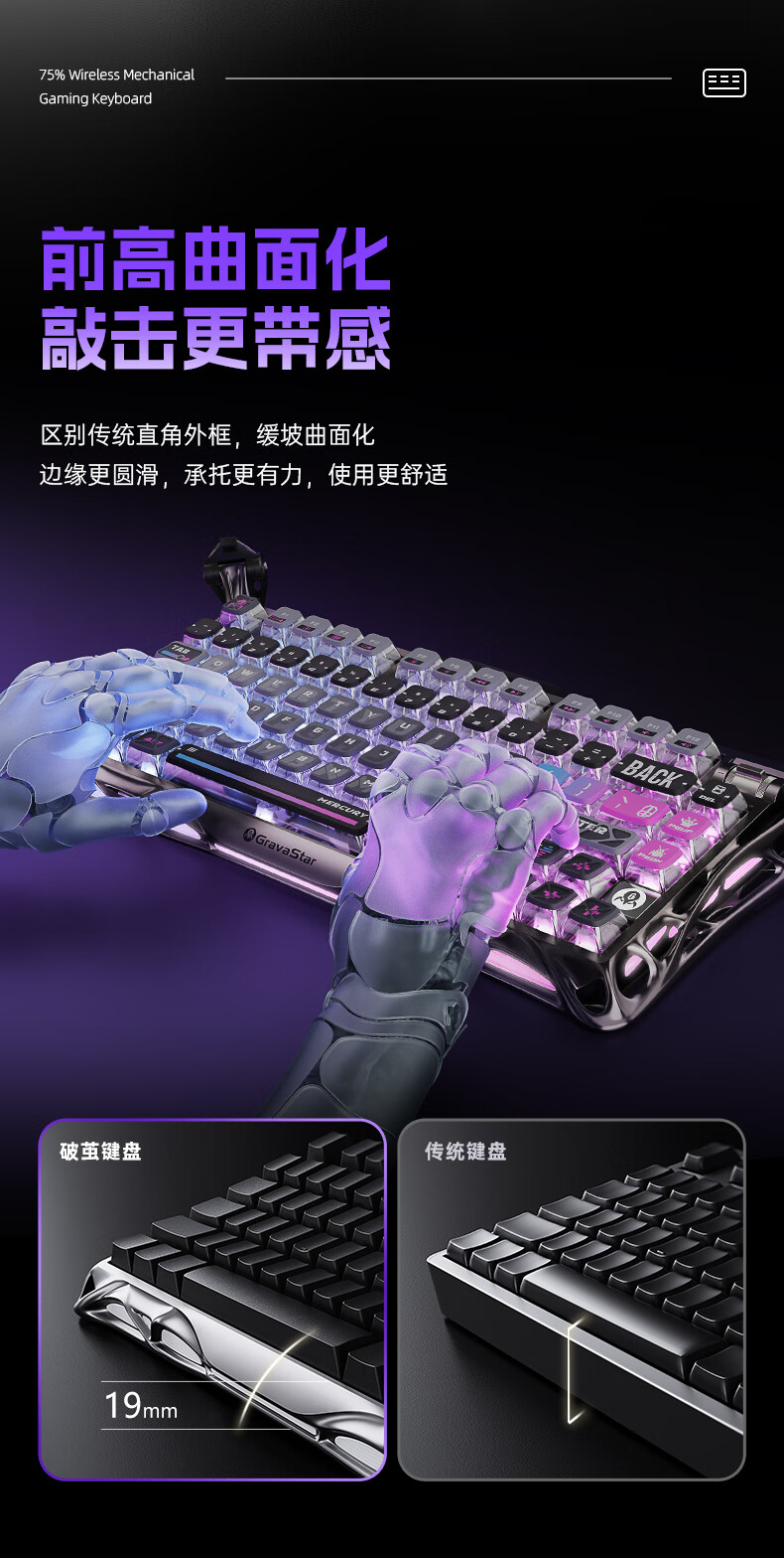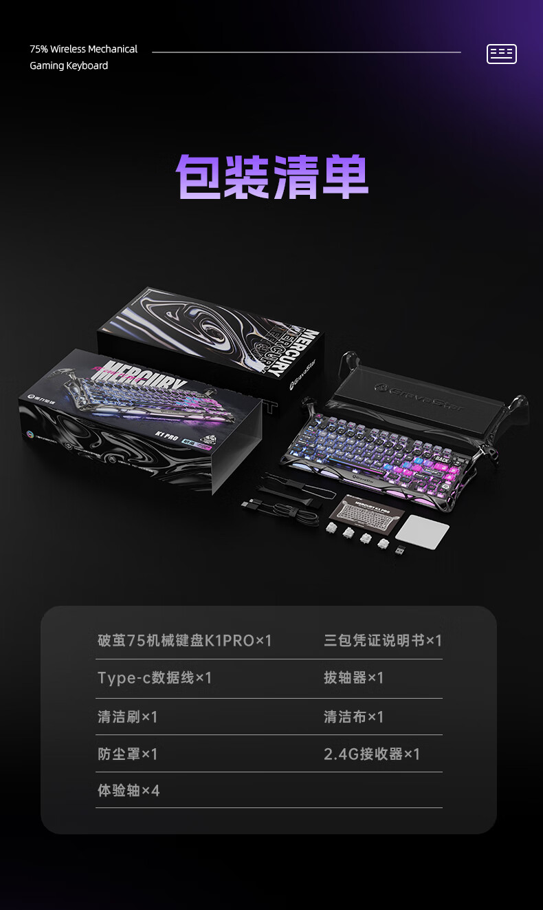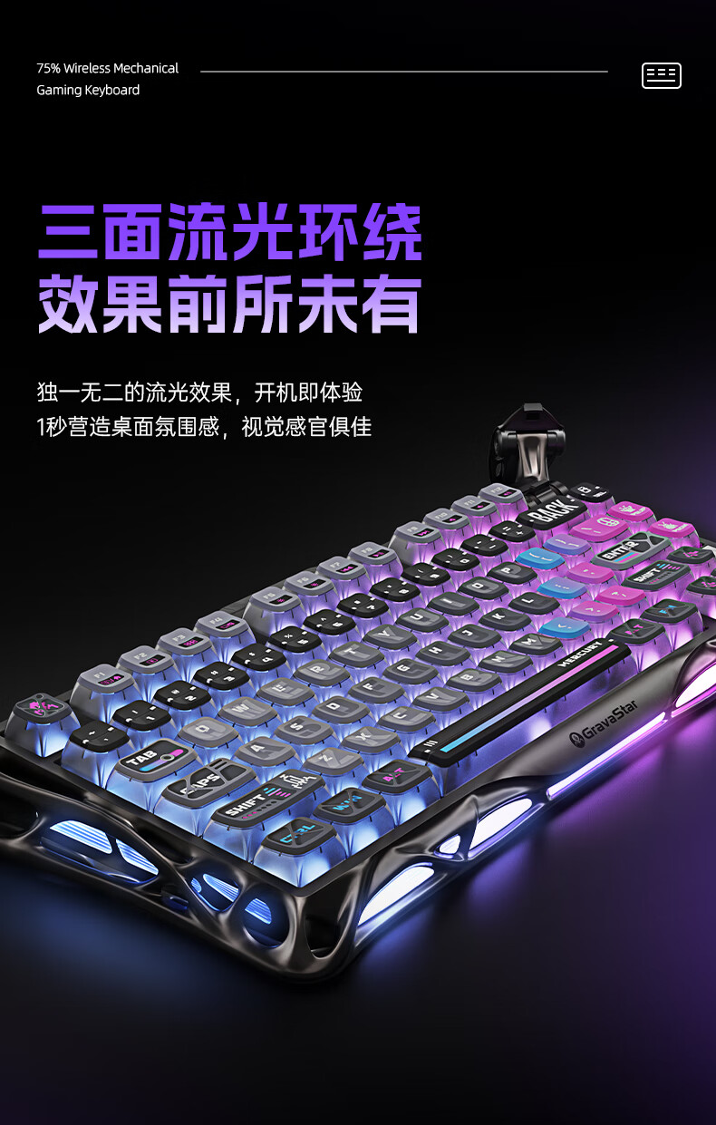 重力星球(GravaStar)机械键盘 破茧75配列无线有线蓝牙三模gasket客制化金属带脚 K1 PRO赛博+X PRO星际银礼盒装