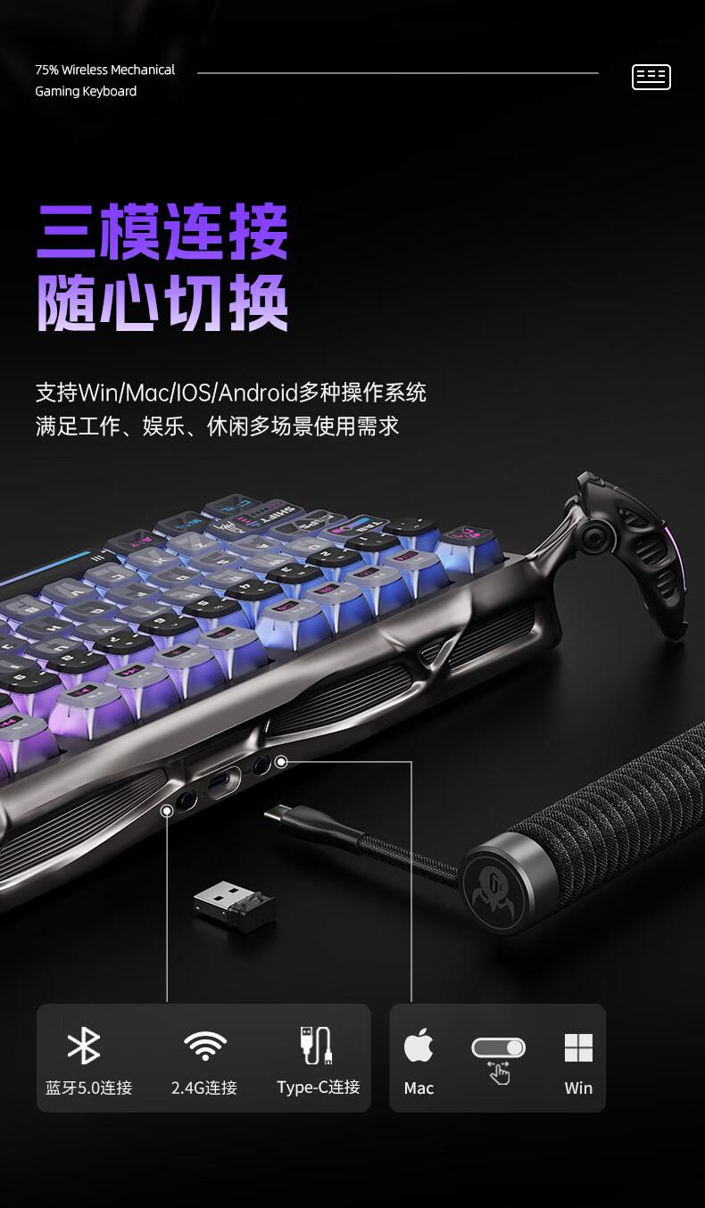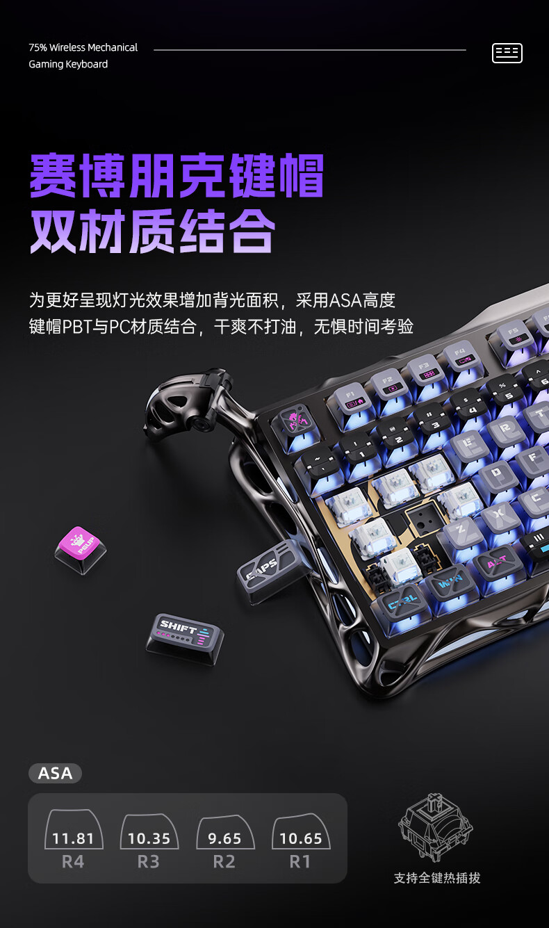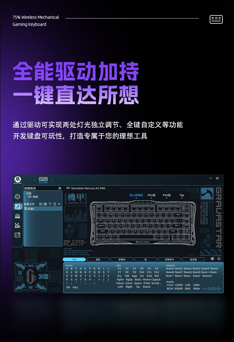 重力星球(GravaStar)机械键盘 破茧75配列无线有线蓝牙三模gasket客制化金属带脚 K1 PRO赛博+X PRO星际银礼盒装