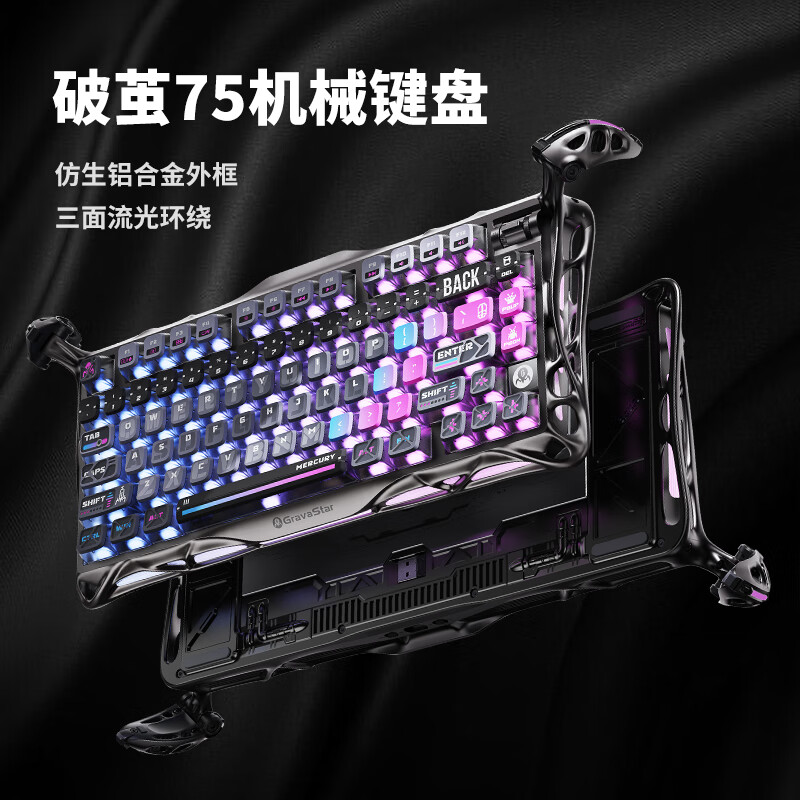 重力星球(GravaStar)机械键盘 破茧75配列无线有线蓝牙三模gasket客制化金属带脚 K1 PRO赛博+X PRO星际银礼盒装