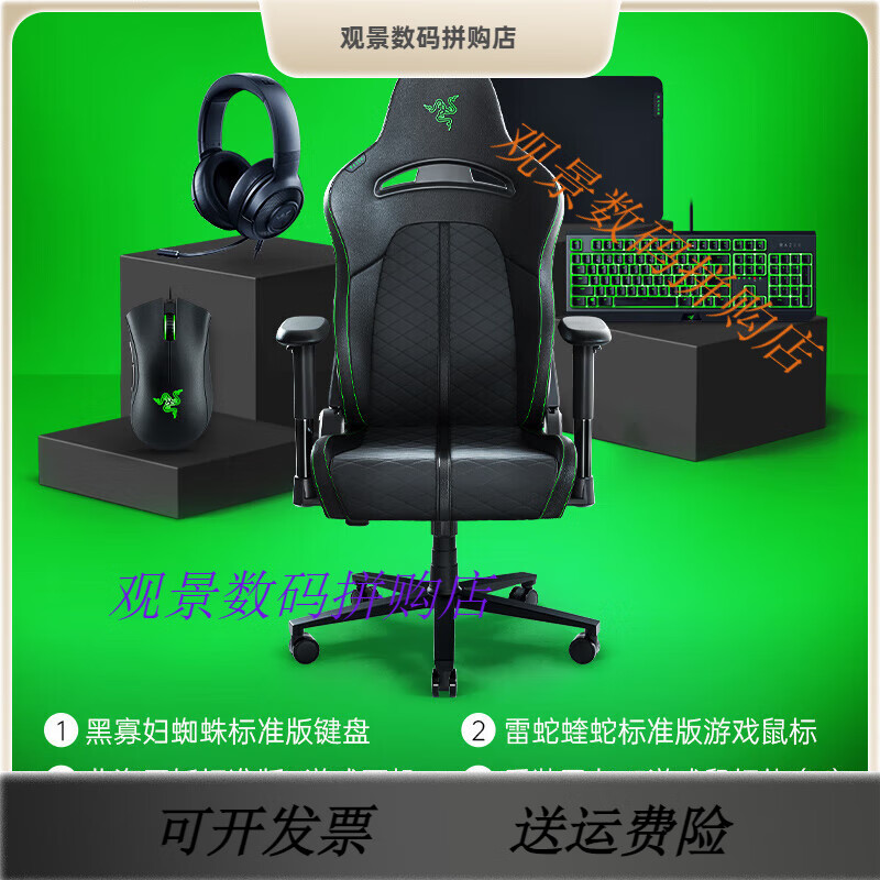 雷蛇X竞技版电脑游戏电竞机械键盘鼠标套装 段落绿轴 标准版键鼠垫耳机电竞椅5件套(104键)