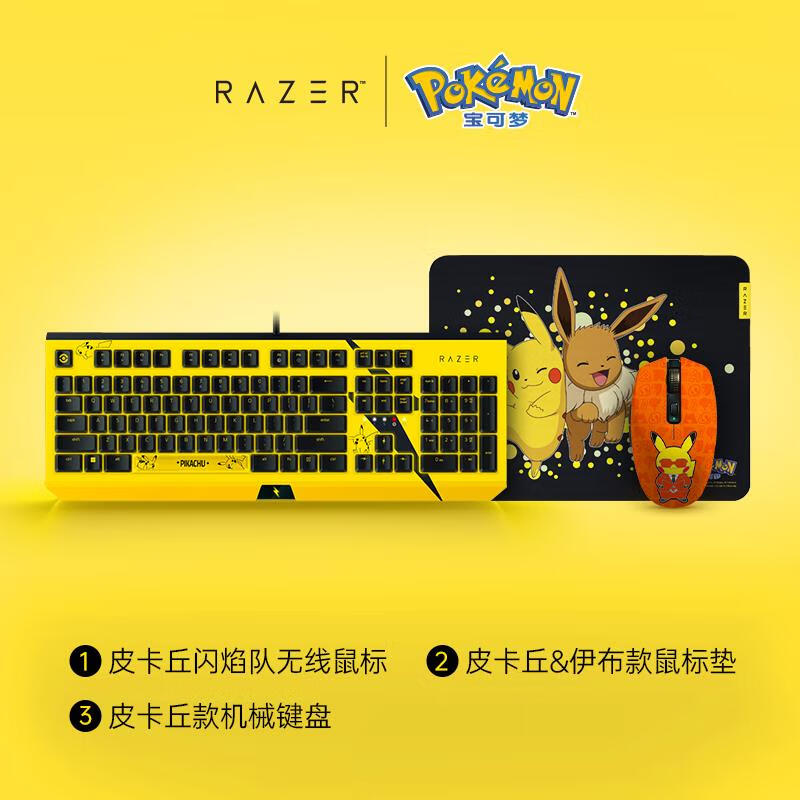 雷蛇宝可梦皮卡丘鼠标垫机械键盘蓝牙耳机音箱游戏套装礼物 皮卡丘键鼠垫3件套