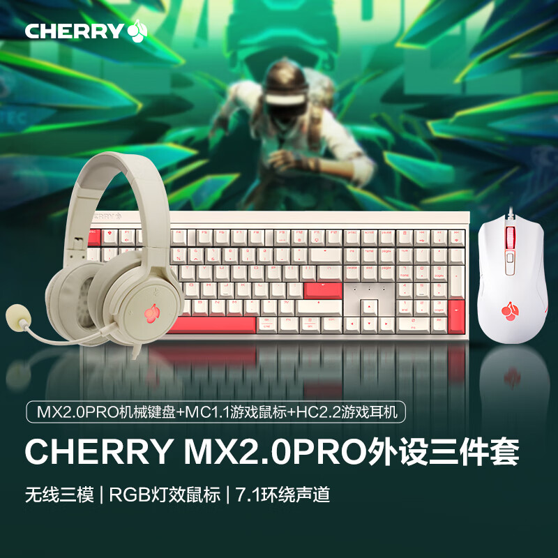 CHERRY樱桃MX2.0PRO机械键盘苍穹+MC1.1游戏鼠标白+HC2.2白色游戏耳机