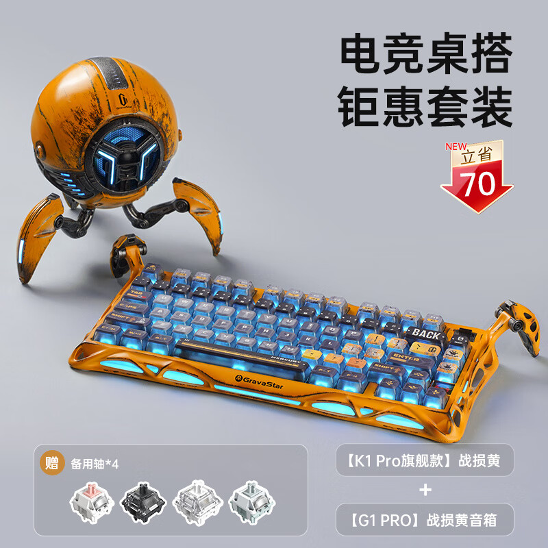 重力星球破茧75K1机械键盘战损黄客制化铝合金无线游戏电竞鼠标 【K1pro旗舰版】战损黄+G1 pro战损黄音响 是 x 79键