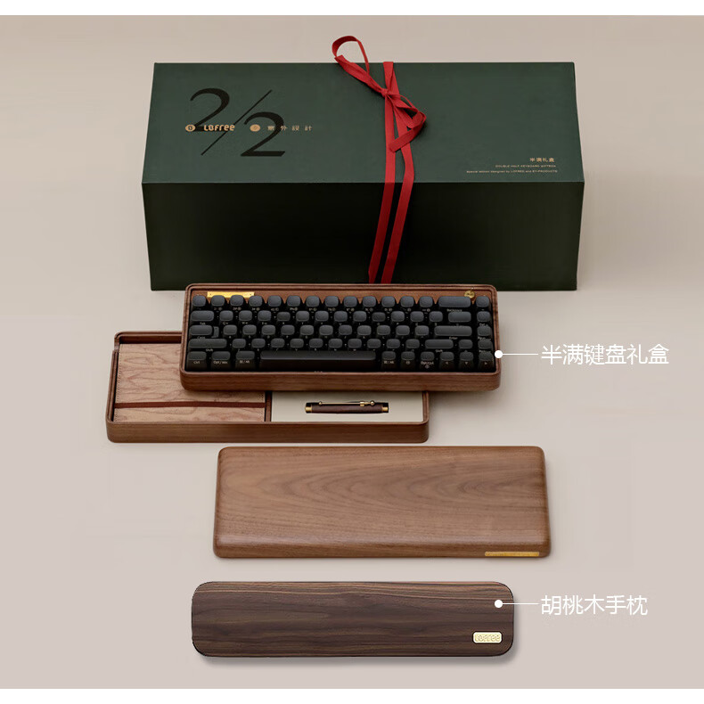 洛斐半满实木机械键盘小翘无线 线蓝牙黄轴文具礼盒套组送人 半满键盘文具礼盒+胡桃木手枕 黄轴