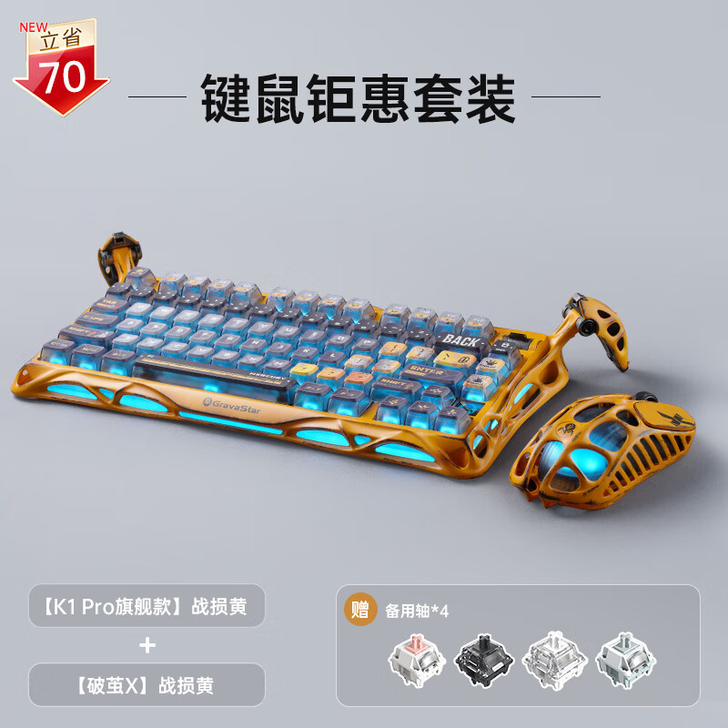 重力星球破茧75K1机械键盘战损铝合金无线游戏电竞鼠标键鼠套装 K1PRO战损黄+破茧x战损黄