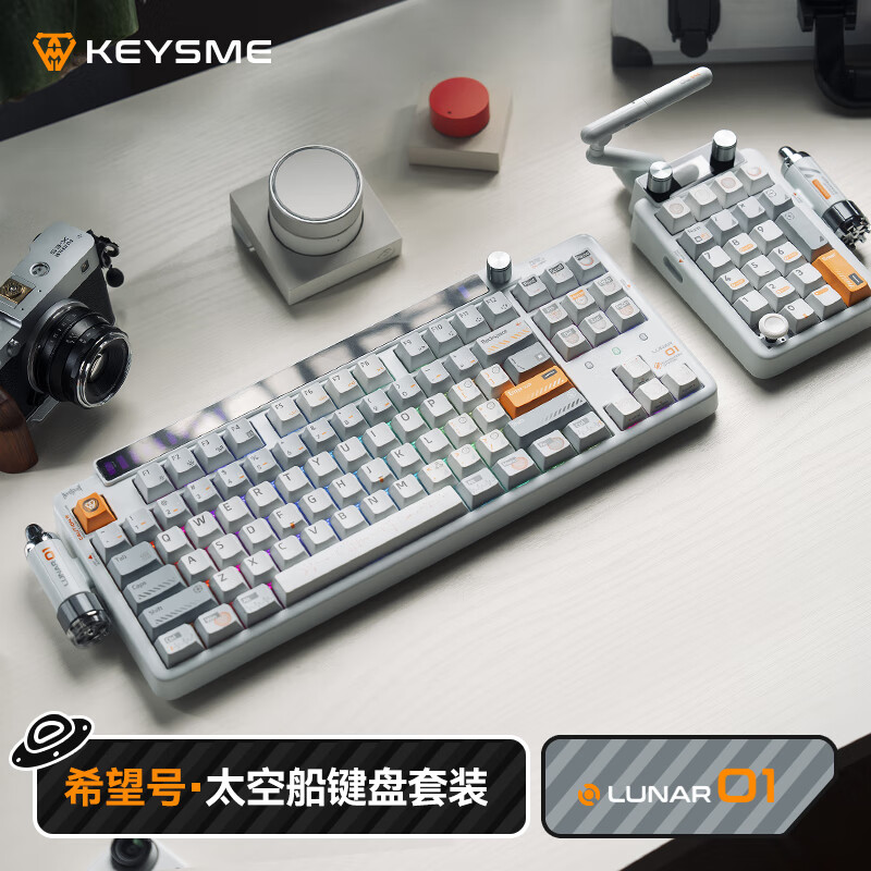 KEYSME太空船客制化机械键盘套装 电竞游戏专用键盘 无线蓝牙三模全键热插拔大键盘+PAD数字小键盘组合 希望号(keysme彗星轴)+数字小键盘(红轴) 线性轴