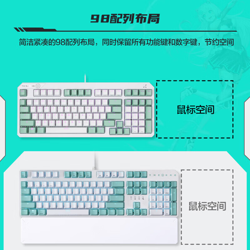 华硕天选游戏键盘TX98 有线电竞键盘 98配列布局 IP57防水防尘 类Gasket结构 RGB光学机械轴 蓝轴键盘+天选mini无线鼠标+天选耳机猫耳套装